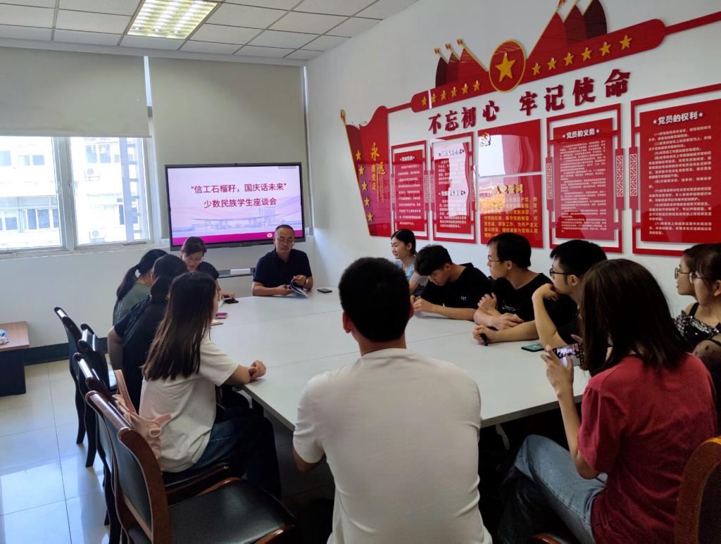 在仙林校区德业楼412会议室组织召开“信工石榴籽,国庆话未来”少数民族学生座谈会,学院党委书记周亚芳、副书记袁军、学工办主任张媛媛、辅导员张婷等老师与学院少数民族学生代表一起座谈,会议由袁军副书记主持。