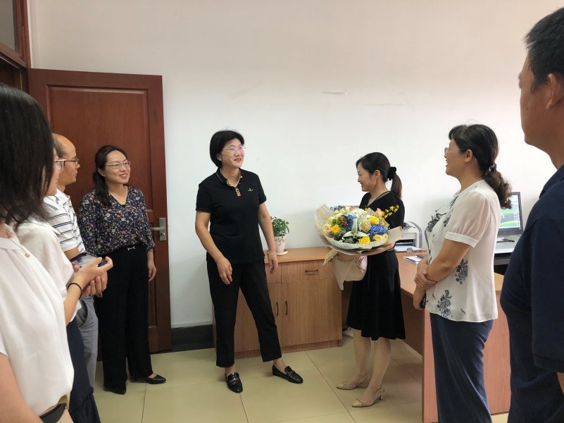 2022年9月8日下午,校党委常委、副校长邱伟芬教授来到红桃视频 ,代表校党委校行政慰问学院教学科研办主任张水红老师,感谢她二十多年在教务秘书岗位上所付出的辛勤努力,并向她送去教师节和中秋节的祝福和问候。国际合作与交流处杨智华副处长(主持工作)、校人事处胡倩老师陪同参加了慰问。