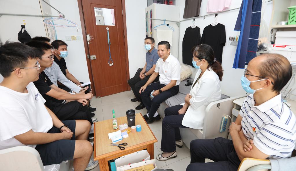 在学生宿舍,张利民书记与同学们开展面对面交流,详细了解新学期同学们学习、生活、就业等方面的情况以及遇到的困难,认真听取同学们对于疫情防控、专业学习、就业服务、体育锻炼、校园管理等方面的诉求和建议。张利民书记代表学校党委和行政,感谢同学们对学校疫情防控工作的理解和支持,希望同学们遵守上级部门和学校疫情防控有关规定,做好个人防护,养成良好的卫生习惯。张利民书记就同学们在上一次走访中提出的诉求和建议办理情况进行了反馈,并针对同学们现场提出的问题进行了细致解答。张利民书记要求相关部门即知即改、立行立改,抓紧进行调研论证,尽最大努力满足同学们提出的合理诉求。张利民书记对同学们上学期取得的成绩表示充分肯定,希望大家树立远大志向,勇担时代重任,立志为国家、为人民、为社会作贡献;珍惜学习时光,全身心投入到学习研究和创新实践中去;树立健康学习和工作的理念,加强体育锻炼,增强体质、健全人格、锤炼意志,努力追求更有高度、更有境界、更有品位的人生。