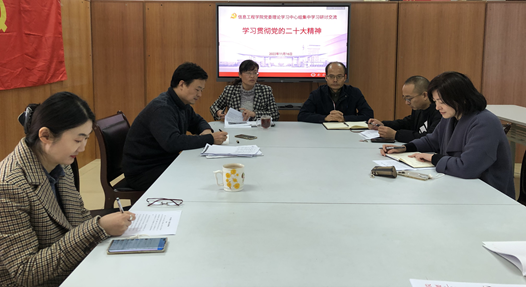 在德业楼404会议室召开院党委理论学习中心组学习研讨会,集中学习研讨党的二十大精神。全体院领导、党委委员参加集中学习研讨。院党委书记周亚芳同志主持了会议。