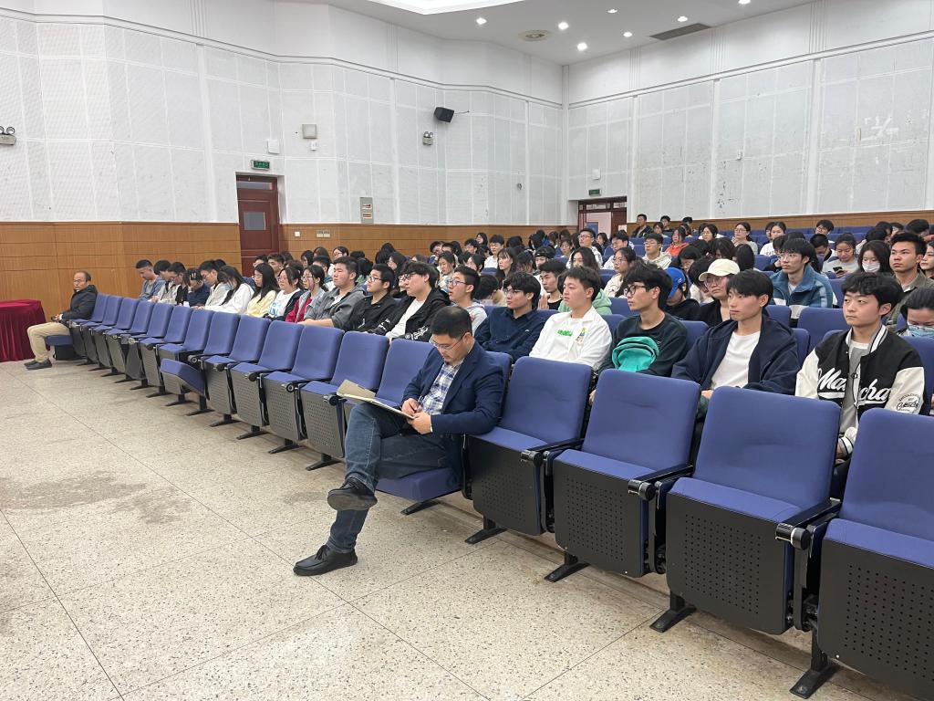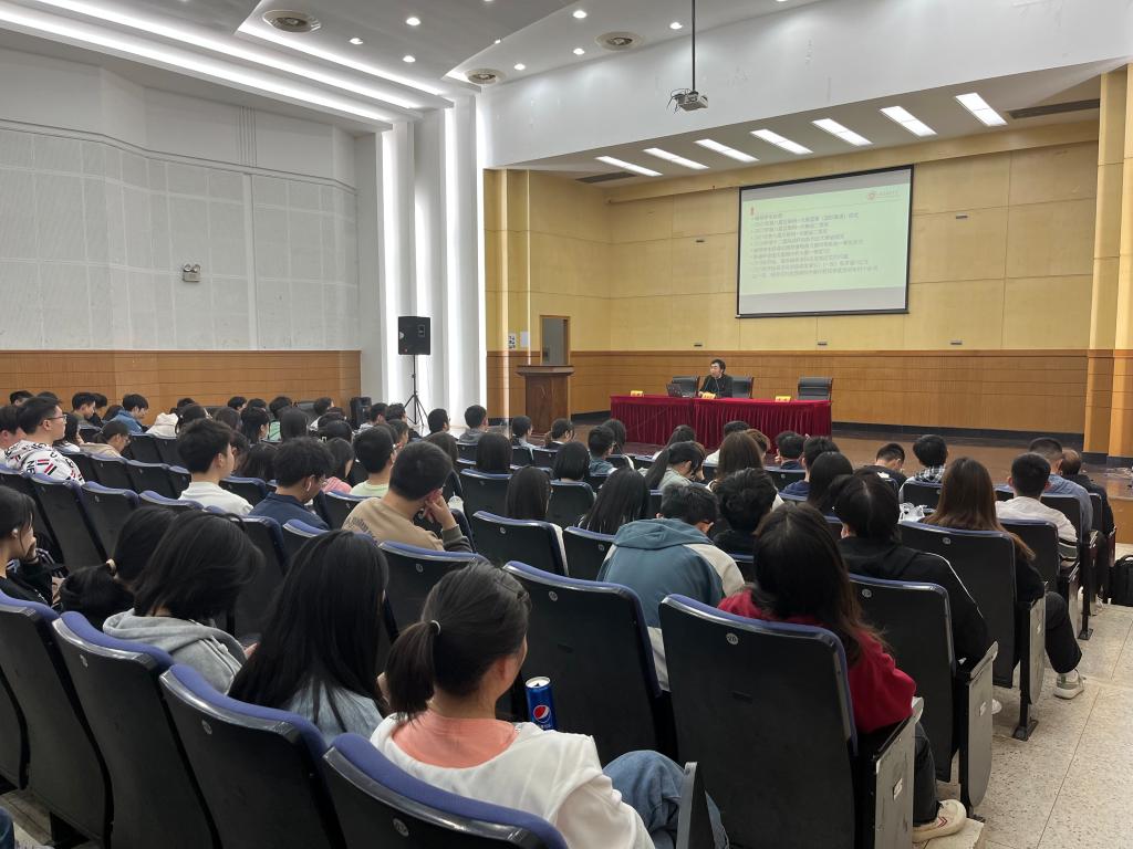 院长黄健主持,学院党委副书记马健,学工办主任张媛媛,辅导员郭秀芳等老师与2021级全体学生参加此次讲座。