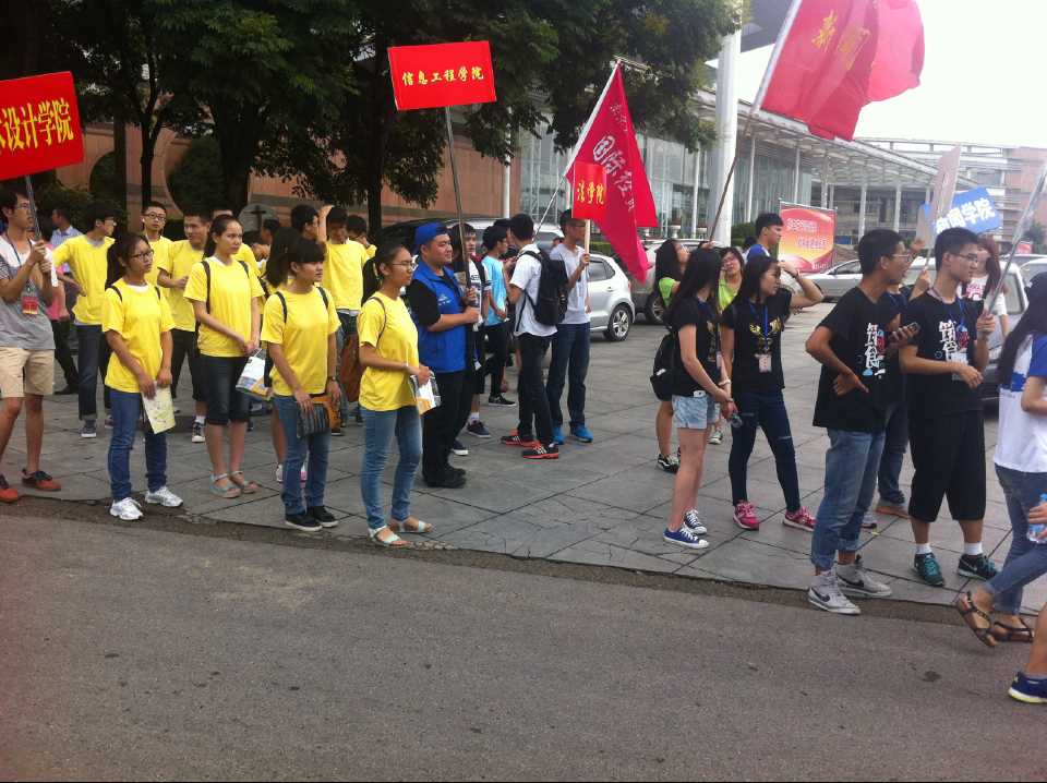 2012级、2013级学生党员自发组成迎新服务小分队,在新生宿舍门口设立党员迎新咨询服务点,为新生和家长提供咨询,帮助他们尽快熟悉校园。