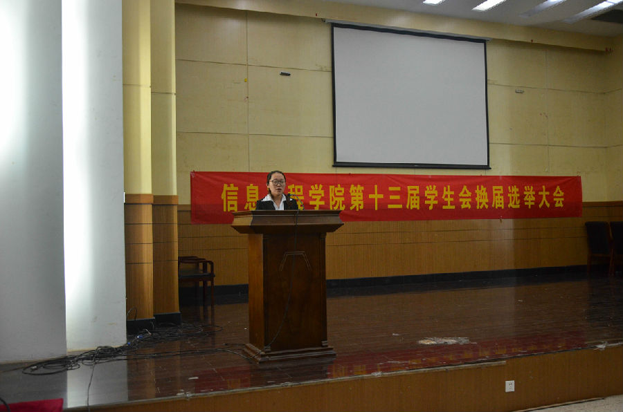 学生会换届选举大会在管理学科楼报告厅举行。院党委副书记潘雪峰老师,团支部书记张媛媛老师,辅导员孙脉老师均出席了此次大会。