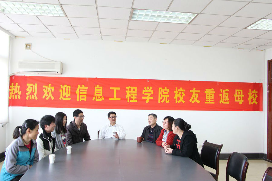 2012届本科毕业生胡友来、周美汐、周华杨、黄海,2013届本科毕业生马健以及2014届本科毕业生严翔等一行人回到母校,看望恩师。院党委书记韩忠愿、副院长许建平、分团委书记张媛媛、辅导员孙脉、张玉蓉等老师与他们共叙师生情。