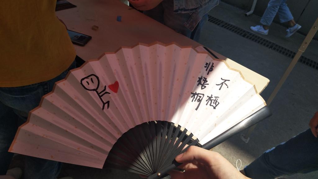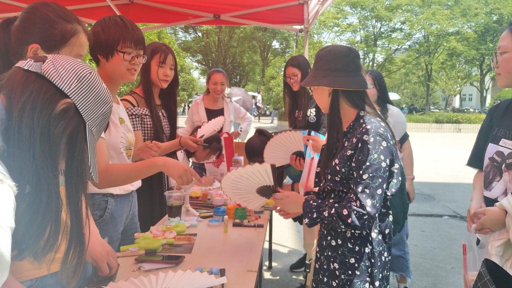 分团委于5月22日在中苑外场成功开展扇面设计活动。虽然烈日当头,也依然没有消减同学们参与活动的热情。