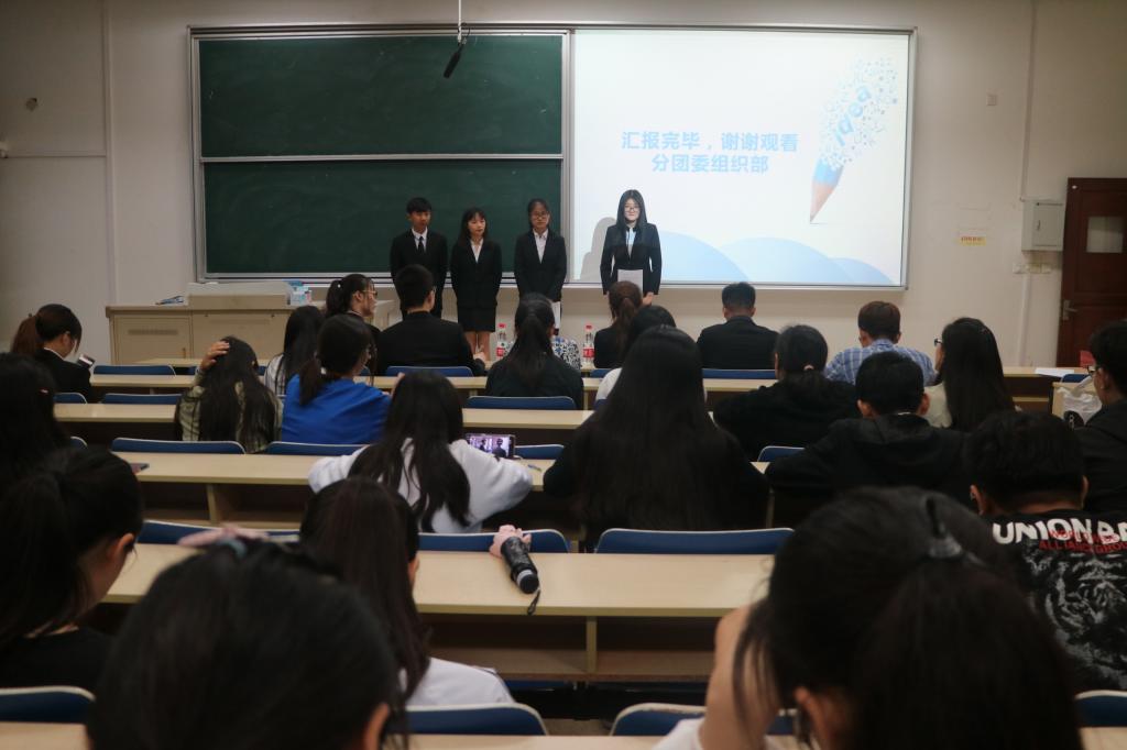 首先,由分团委副书记张钰对本学年进行工作总结。然后,分团委四个部门依次上台进行述职,各部门对这一年来在各方面取得的成就做了总结。接着,校友办代表进行述职,对校友办的工作进行总结也进行了自我反思与展望。