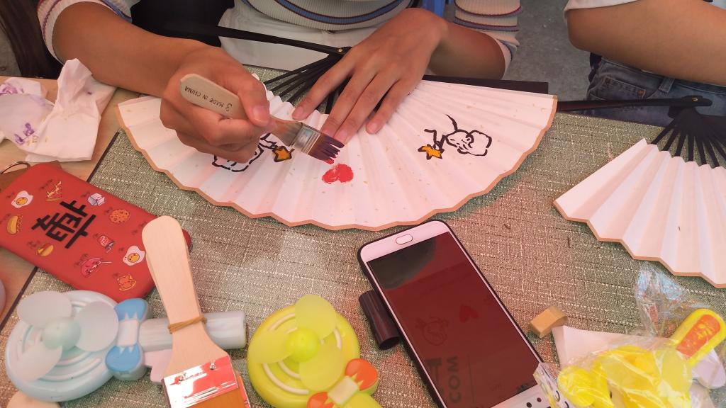 “扇面以为媒,画就青年型”于5月22日在中苑外场成功开展。虽然烈日当头,也依然没有消减同学们参与活动的热情。