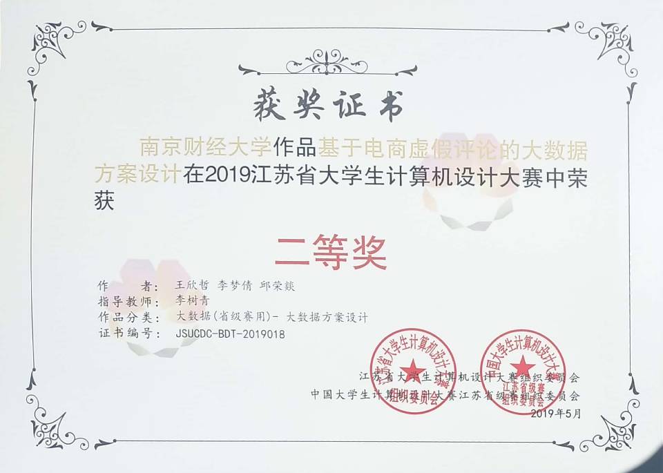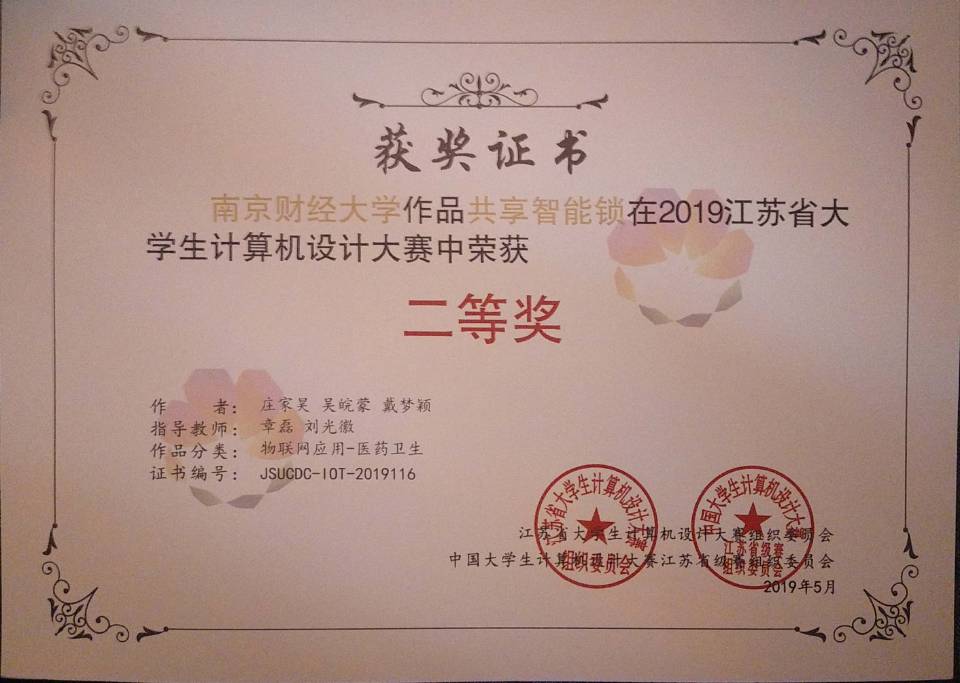 李树青老师指导,2018级李梦倩、王欣哲、邱荣燚等三位同学创作的“基于电商虚假评论的大数据方案设计”获得“大数据(省级赛用)- 大数据方案设计”普通组本科组二等奖,由章磊老师指导,2016级庄家昊、吴皖蒙、戴梦颖等三位同学创作的“共享智能锁”荣获“物联网应用-医药卫生”组本科组二等奖,由章磊老师指导,2016级韩梦、叶乔波、周恒等三位同学创作的“互联门锁技术”荣获“物联网应用-城市管理”本科组优胜奖。前两支队伍将代表红桃视频