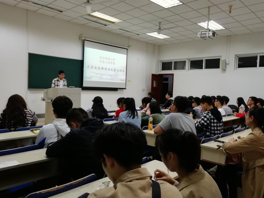 在学长分享完自己的经验后,有同学向他提问关于当初他自己完成项目的大致过程。学长介绍了一下自己组的人员分工和项目内容,最后他还是提醒大家,一定要抱着坚持的心态去踏踏实实做好这一年的工作,否则很难在大创比赛中取得令自己满意的成绩,同时还让同学们一定要认真学习基础知识,这样才会让以后大三大四的专业知识学习变得轻松一些,也能让自己在实践操作中变得更加熟练。