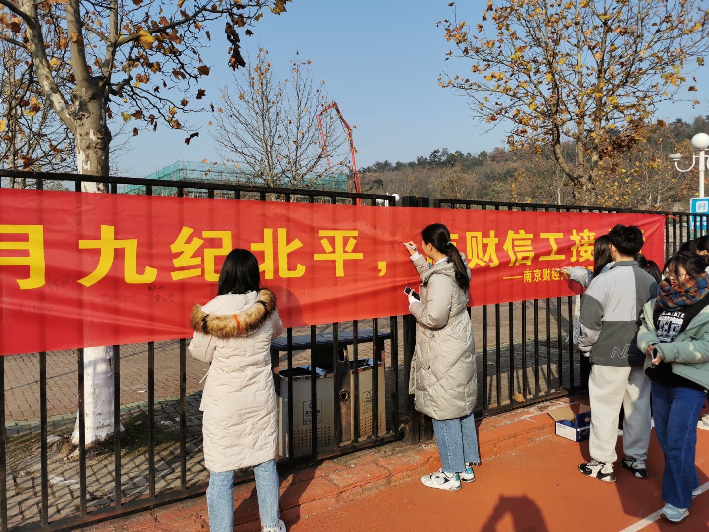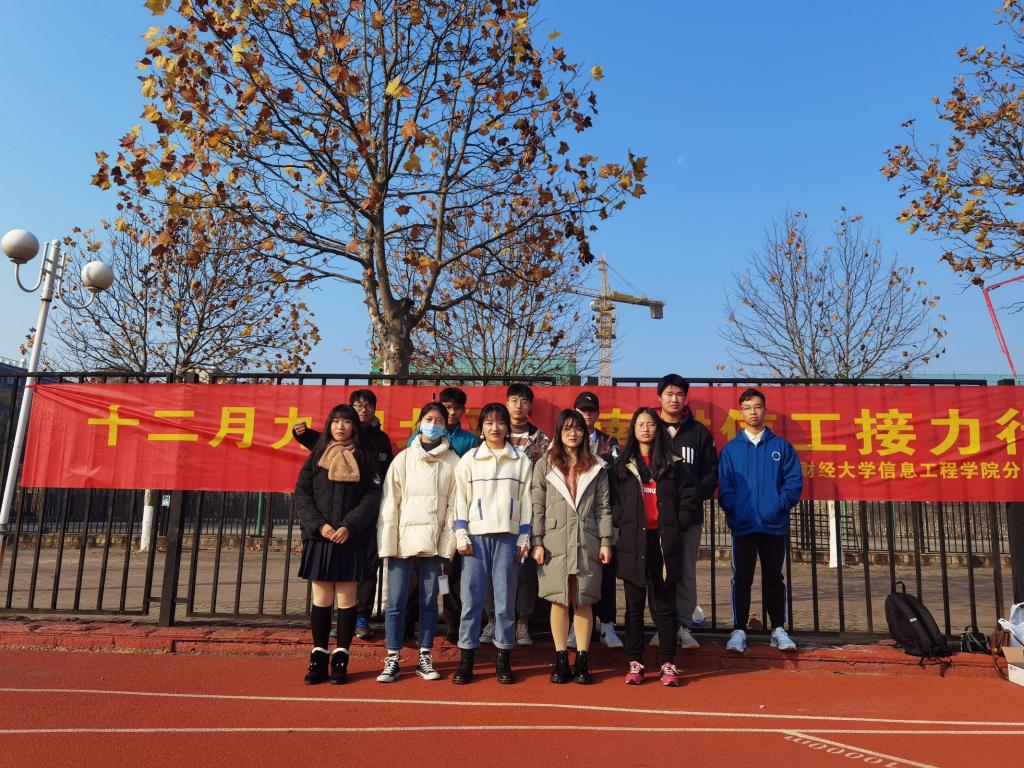 学生于中苑操场开展以“一二·九纪北平,南财信工接力行”为主题的大学生爱国主义接力活动。