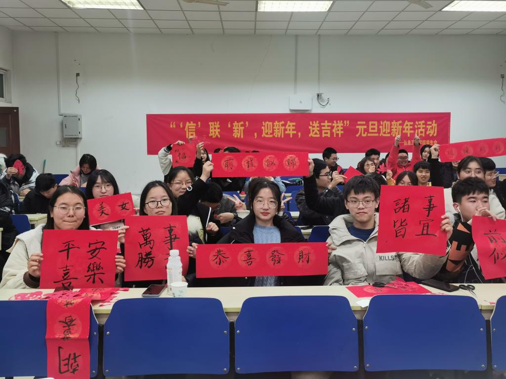 在一片欢声笑语互赠春联和剪纸成品中结束了这次珍贵而美好的活动。此次活动,丰富了学生们的课余生活,充实了学生们的精神世界。让学生们感受到传统文化的魅力,传统与新年结合,展现信工学子对传统文化的热爱。凛冬散尽,星河长明,新的一年,万事顺遂。