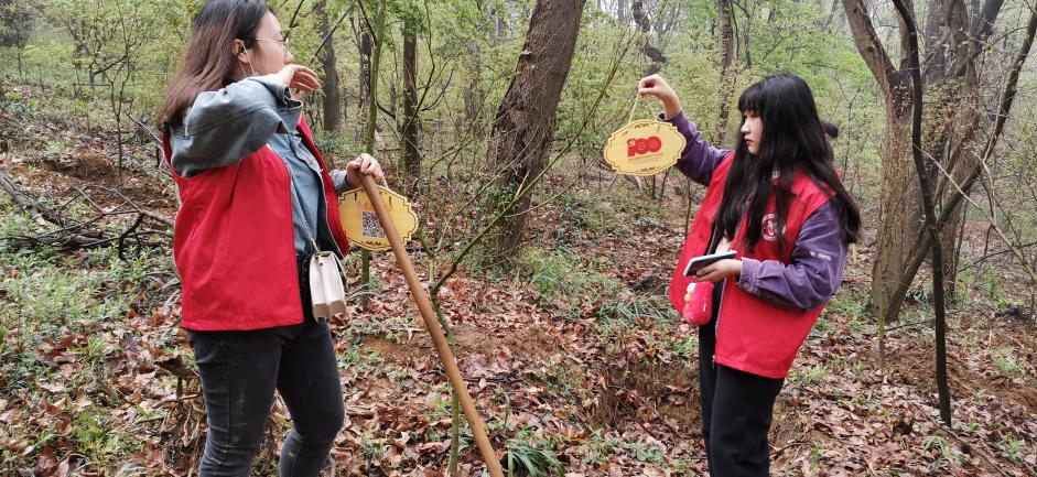 栽下的常青树苗在微风中摇曳生姿,志愿者在贺卡上写下祝福的话语,随后将贺卡悬挂在小树苗上,并组织同学们扫描卡片上的二维码共同学习。二维码呈现的内容来源于张全景的《红旗文稿》,主要讲解中国共产党百年的奋斗历程和中华民族的伟大复兴,帮助志愿者学习党史并了解到最新的社会热点。