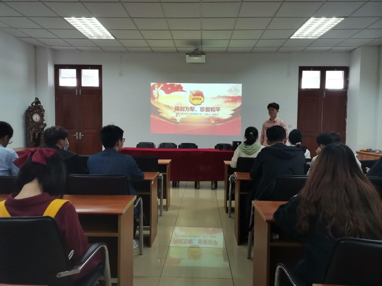 于2021年4月23日举办以“铸剑为犁,珍爱和平”为主题的中级团课第三讲暨青马工程第二讲。本次活动由组织部高家成同学主讲,部分青马班同学参加。