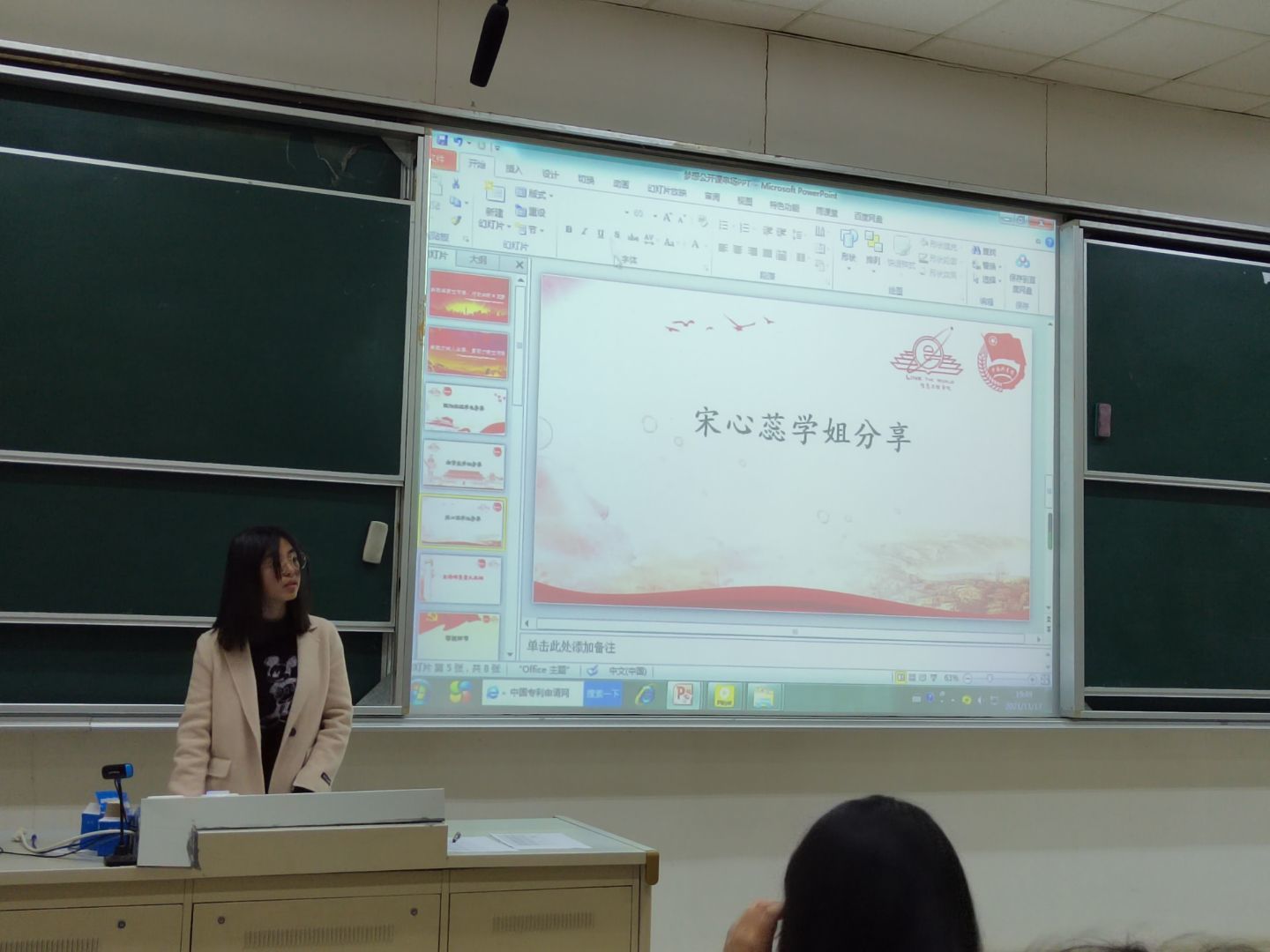 随后,宋心蕊同学从自身出发,向大家介绍了以“点旅成金,乡村振兴”为主题的暑期实践活动。在贵州肇兴的大山深处有一座美丽的侗寨,宋心蕊同学带领队员访问各类商铺,留下了一帧帧动人的图片;他们在蜡染基地感受文化的多彩;他们与管理委员会主任进行深度的交流并发现了问题。最后,宋心蕊同学总结道:“纸上得来终觉浅,绝知此事要躬行,青年人一定要有责任有追求,上承泱泱华夏五千年文明,下启巍巍中国国富民强。”