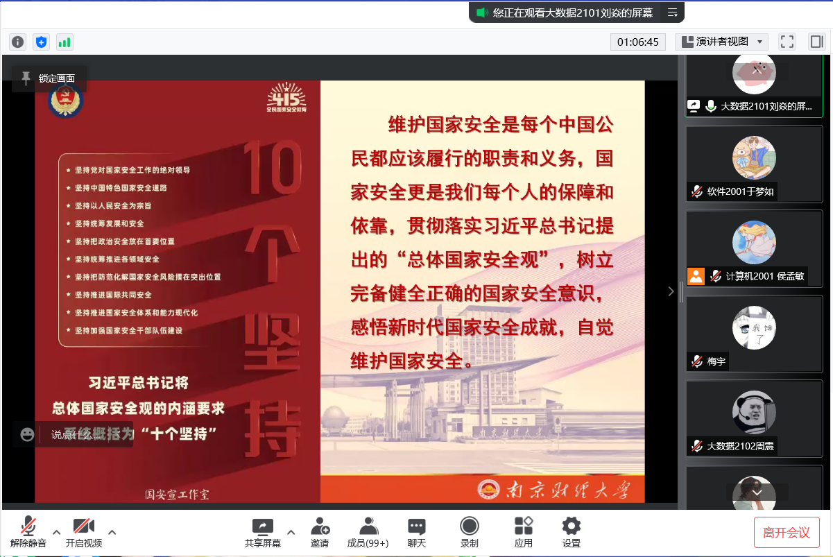 活动中,同学们在线参观了上海国家安全教育馆,了解到各个时期守护国家安全的卫士们,以及他们在隐蔽战线上,为维护国家的安全和根本利益所进行的艰苦卓绝的斗争。活动还结合警示教育案例和国家安全知识问答,让同学们更深刻地认识到国家安全涉及到我们生活方方面面,维护国家安全是我们每一位公民的责任。