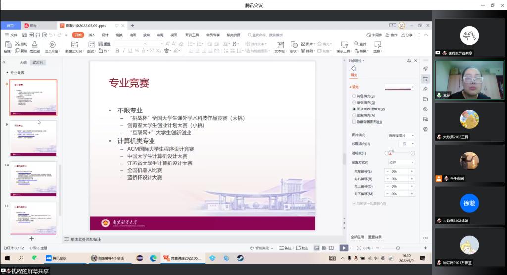 孙脉老师首先将大学生学科竞赛分为基础学科类和专业学科类竞赛,分门别类的将各个比赛的性质、特点、级别以及红桃视频 举办该比赛的流程和注意事项;随后孙脉老师结合自己多年学生辅导员以及参赛指导老师工作经验,向大家说明比赛过程中的重点和难点,她强调要拥有一颗充满热情的心去参加比赛、享受比赛,不要惧怕,也不要妄自菲薄;最后孙脉老师将以往参赛过的优秀学子所取得的成绩与大家分享,让同学们收获颇丰。