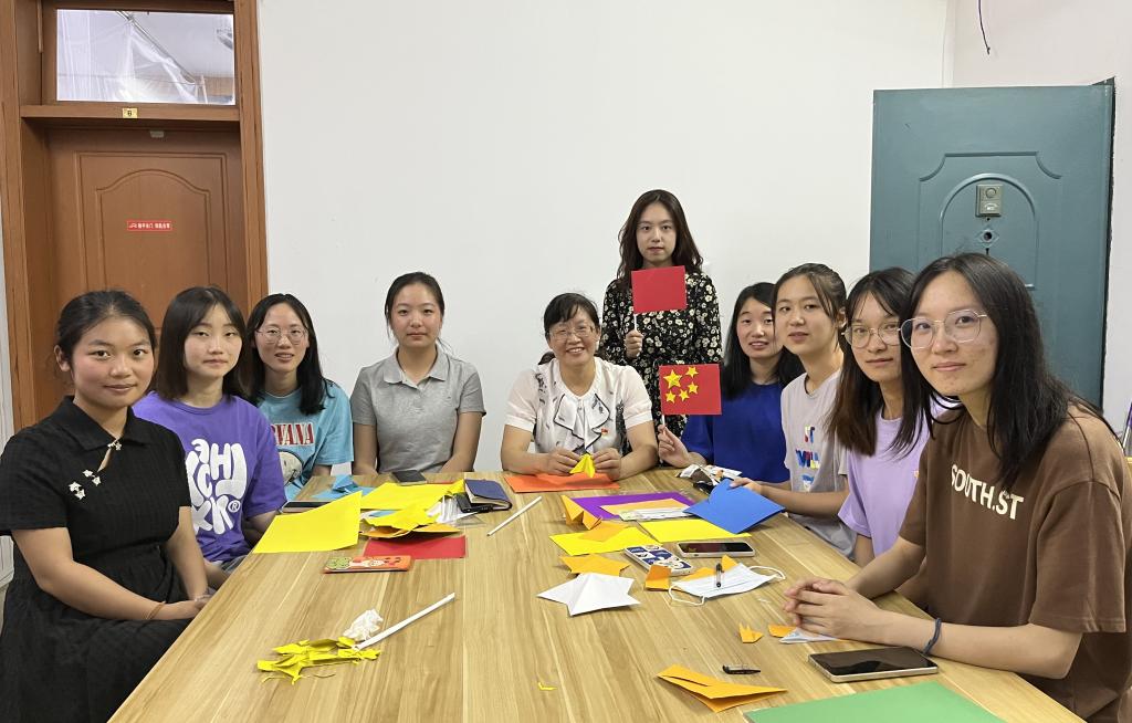 党委书记、院本科生第一党支部政治辅导员周亚芳来到仙林校区西苑5号学生宿管站开展调研工作,并与同学们一起制作国旗迎国庆。