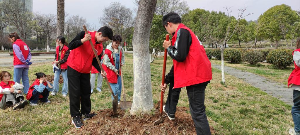 开展了“财苑添新绿,植树正当时”护植护绿植树节活动。学院各年级志愿者代表在后勤基建处陈思思老师和辅导员陈鑫老师的带领下参加了本次活动。