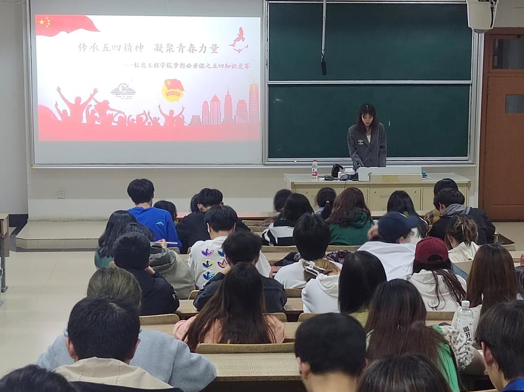 在博远楼110教室举办了“传承五四精神,凝聚青春力量”梦想公开课暨五四知识竞赛。
