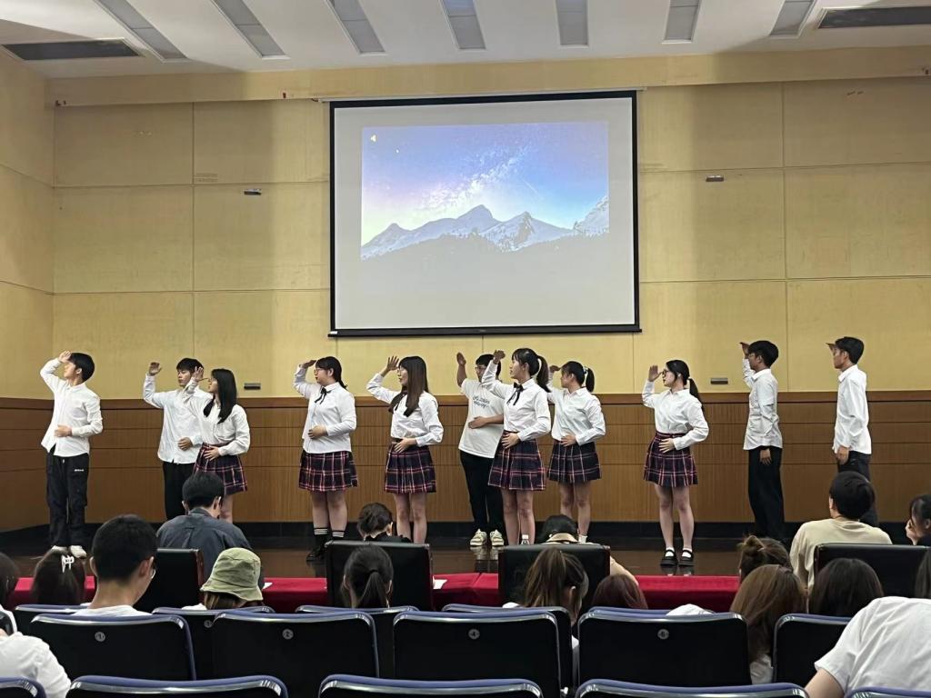 手语操参赛曲目为《仰望星空》,“星空,看似遥远,其实它离我们只不过是踮起脚尖的距离,就像我们的心,我们的梦,只要你努力踮起脚尖,就永远不曾遥远。”在成员选拔结束后,同学们多次进行排练——训练手部动作,学习表情管理以及熟练舞台队形等。期间,同学们按时到场、积极配合,取得良好的训练成果。