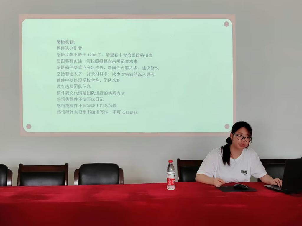 在仙林校区德业楼406举办暑期社会实践新闻写作培训会。培训会由大数据2102班龙文雪主讲。学院各暑期社会实践团队通讯员、相关同学参加了此次培训会。