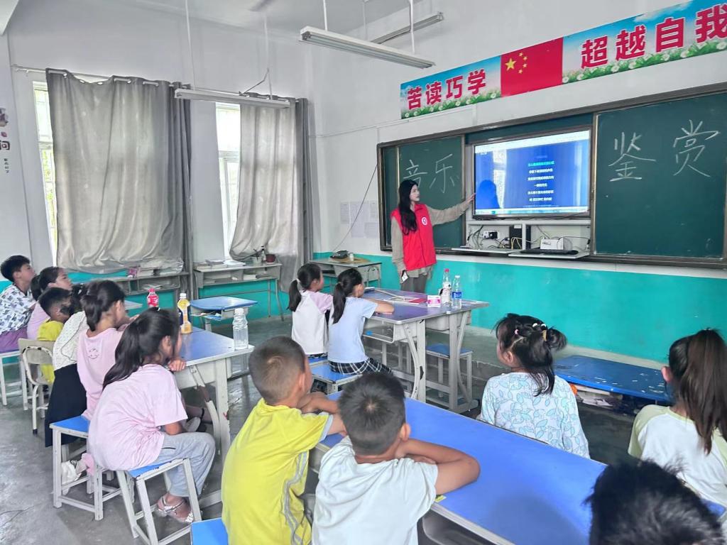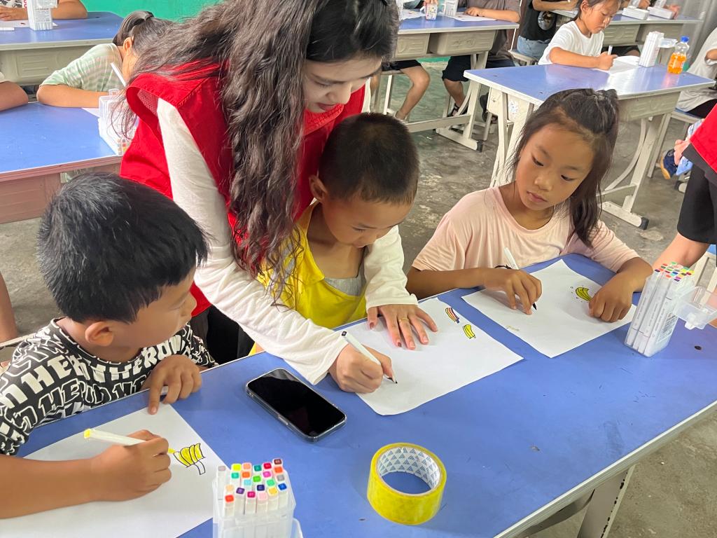 为丰富小学生的暑假生活,以实际行动助力乡村教育振兴,6月30日,红桃视频 红桃视频 “拨云见皖山,同心共筑梦”暑期“三下乡”实践团队赴安徽省淮北市杜集区梧北小学开展支教活动,为梧北小学的小朋友们带来了丰富多彩的文体课程。课堂上,小朋友们认真听讲,积极回答问题,对轻松愉悦的暑期课程满怀热情。