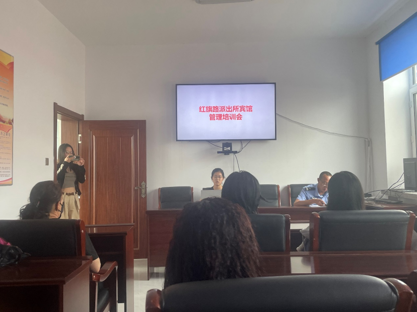 据此,实践团队于7月16日在根河市派出所对旅店店主及旅客代表进行了“旅店安全”主题宣讲。宣讲从旅店火灾安全,未成年入住安全,旅店盗窃安全三方面展开。首先就旅店火灾安全方面为旅店店主及住客普及了《中华人民共和国消防法》并讲解了火情后该如何处理。其次在未成年入住安全方面,通过《中华人民共和国未成年人保护法》强调了旅店需严格坚持“五个必须”,即必须查验入住的未成年人身份,如实登记报送相关信息;必须询问未成年人父母或者其他监护人的联系方式;必须询问同住人员身份等情况并记录备查;当发生安全事故时,旅店必须询向公安机关报告可疑情况并及时联系未成年人的父母或者其他监护人,同时采取相应安全保护措施;入住期间,旅店必须加强安全巡查和访客管理,预防针对未成年人的不法侵害。最后在旅店盗窃安全方面,普及了盗窃相关法律及旅店工作人员要求。