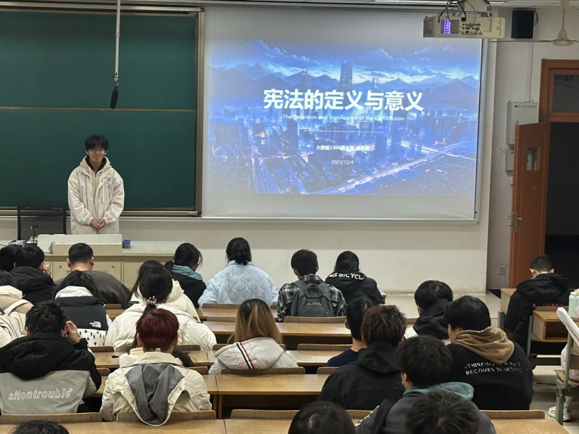 开展了2023年教育系统“宪法宣传周活动”。期间,学院组织各团支部开展宪法学习主题团课,组织团学干部观看普法网直播以及在悦读角进行宪法晨读等系列活动。