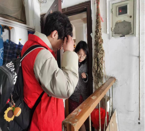 在外场的宣传工作结束后,志愿者们分组行动,跟随社区工作人员挨家挨户地走访,逐一排查社区内的各个楼道,向居民们强调消防安全知识,并帮助居民们清理具有消防安全隐患的杂物。对于难以自行解决的隐患,志愿者们认真拍照记录,报告给社区负责人,以确保消防安全整改落实到位到各个角落,保护居民们的生命财产安全。