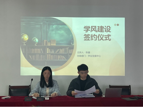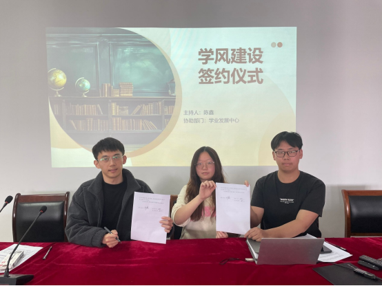 2022级出现的学风问题进行了强调,并带领参会同学再次学习了《学生手册》中的课堂纪律的相关内容。最后,陈鑫老师与各班级副班长、学习委员签订了学风建设责任书。