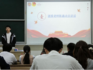 团委老师陈鑫做动员发言。他介绍了暑期社会实践的重要意义,带领大家认真学习了暑期社会实践的通知内容,并对参与暑期社会实践总结表彰、评先评优要求做了阐述。他强调,“暑期社会实践”不止“假期”、也不止“实践”,鼓励同学们结合学科知识、专业特长、创新创业赛事等多样化开展社会实践活动,努力实现在社会课堂中“受教育、长才干、作贡献”,争做有理想、敢担当、能吃苦、肯奋斗的新时代好青年。
