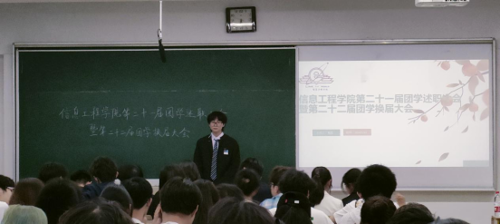 活动最后,陈鑫老师进行总结发言。他首先对学院第二十一届团学全体工作人员过去一年的辛勤付出表示感谢,并寄语新一届的团学骨干继续秉持“全心全意为同学服务”的初心使命,进一步提升团的引领力、组织力、服务力和革新力,力争在赢得青年信赖、构建特色品牌等方面不断取得新突破,为开创学院第二十二届团学工作新局面而团结奋斗。