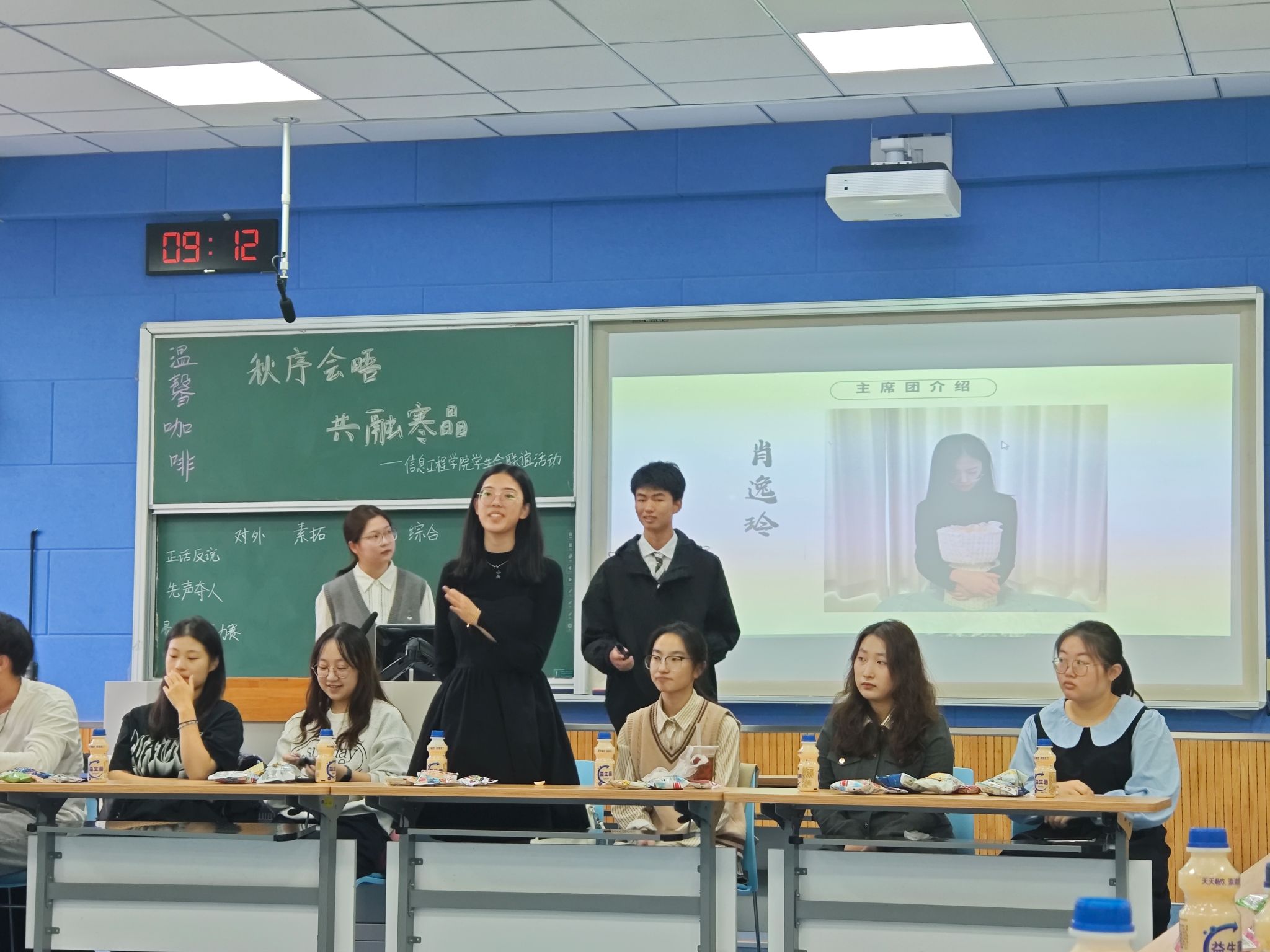 活动开始,在简单的介绍后,三位主席及五位部门负责人共同参与“正话反说”小游戏,平日里耳熟能详的词句在颠倒后又带来新的乐趣,大家兴致高昂,场面渐渐活跃起来。