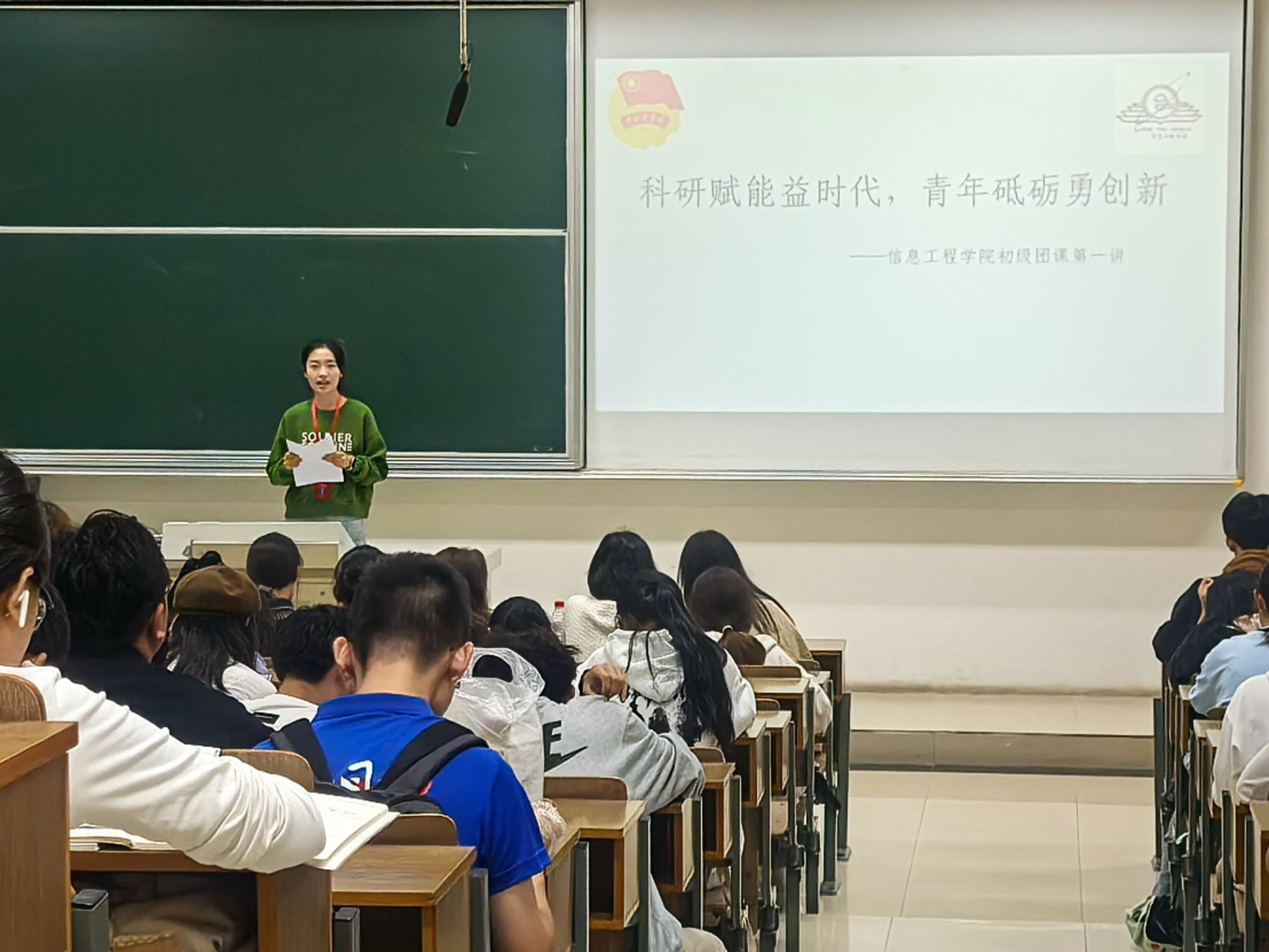 在博远楼403开展“科研赋能益时代,青年砥砺勇创新”初级团课第一讲。