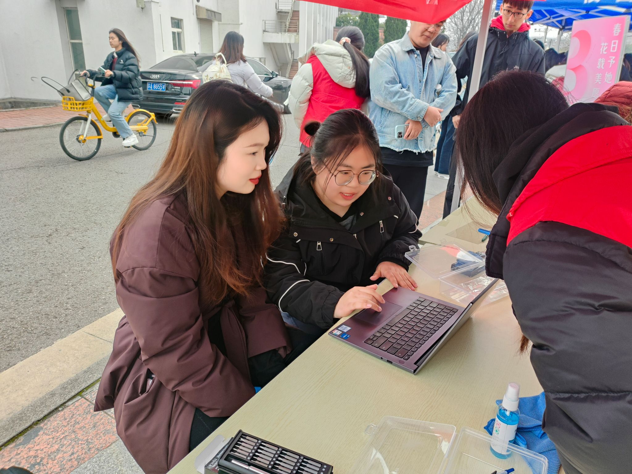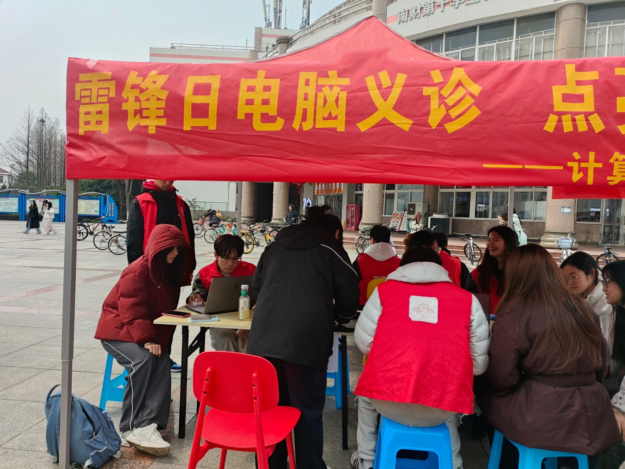 于3月7日在中苑食堂前举办了“雷锋日电脑义诊”公益活动。此次活动旨在为全校师生提供免费的电脑维修和技术支持,通过专业力量传递温暖,助力校园数字化生活的提升。