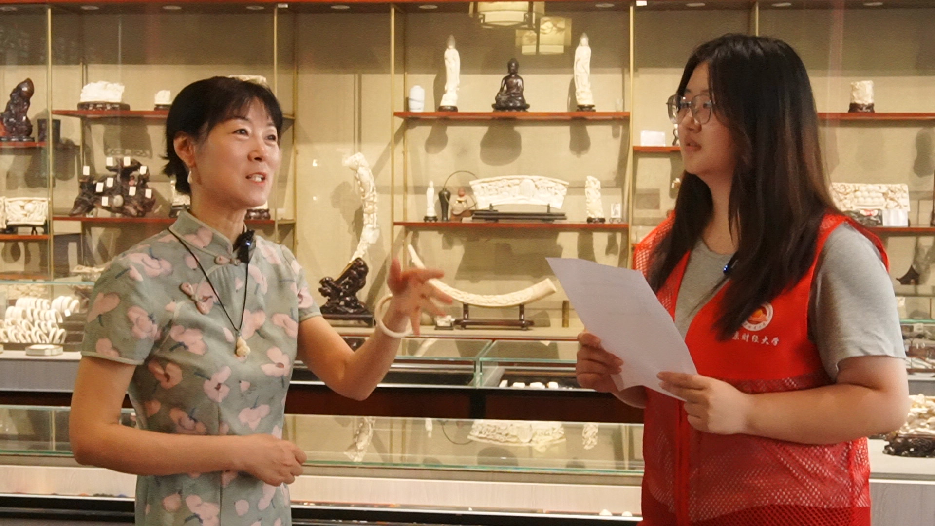 7月17日,团队将实践重点放在苏州牙雕艺术馆。作为国家级非物质文化遗产“苏州牙雕”的传承基地,该馆集技艺展示、传承人工作室、体验空间于一体,藏有从明清到当代的牙雕作品80余件。