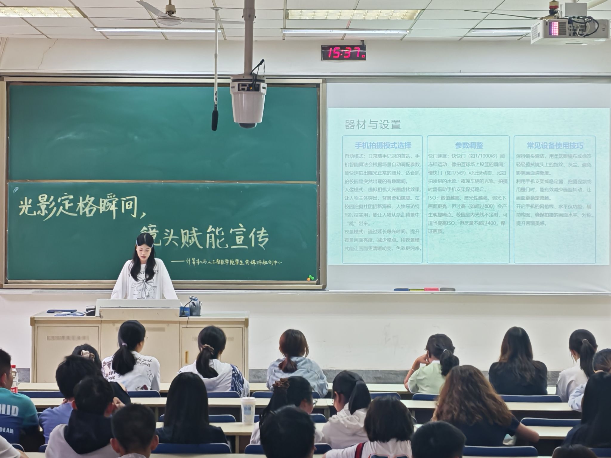 学生会成员的摄影技能与宣传工作能力,激发大家对摄影艺术的兴趣,进一步推动学院宣传工作的开展,10月12日,学院在德业楼101教室成功举办摄影培训活动。本次活动由学生会媒体融创中心组织,2025级全体学生会成员参加。