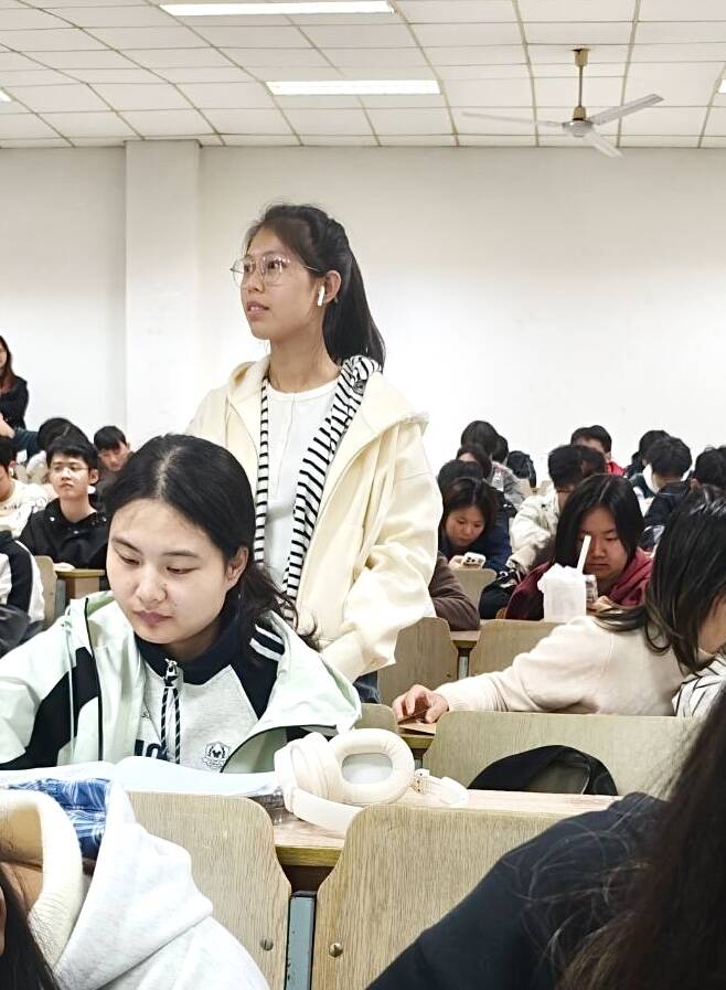 在“重阳焕新”环节,课程内容丰富多彩。主持人不仅详细介绍了登高、佩茱萸、吃重阳糕等传统习俗,还生动讲述了“恒景剑斩瘟魔”等与重阳节起源相关的经典故事,让同学们在历史的回响中感受节日的深厚底蕴。一段精心准备的科普短视频,以现代视角解读传统,进一步增强了活动的趣味性与知识性。此外,对传统技艺制作过程的介绍,则激发了同学们对非物质文化遗产的浓厚兴趣,让大家领略到古老智慧历久弥新的魅力。
