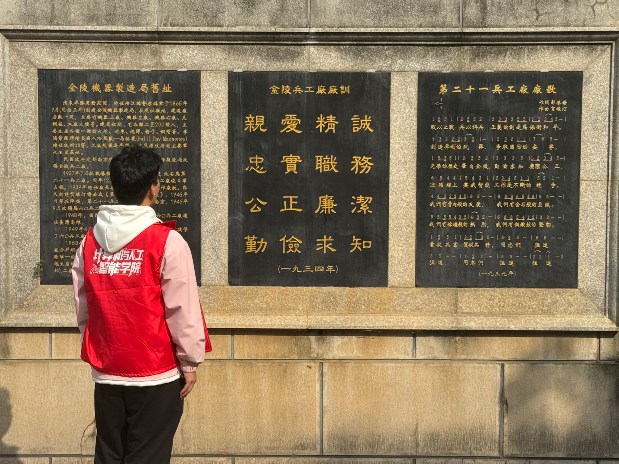 青马班学员学习了解金陵兵工厂的碑文和厂训