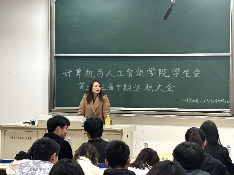 第二十三届学生会中期述职大会于12月10日于德业楼112进行。院团委书记郭秀芳老师,学生会主席钱丁欣、张宇成、范屹如,法学院学生会主席李阳、金融学院学生会主席卞新淳出席此次会议,各班班长、学生会全体成员参加此次会议。