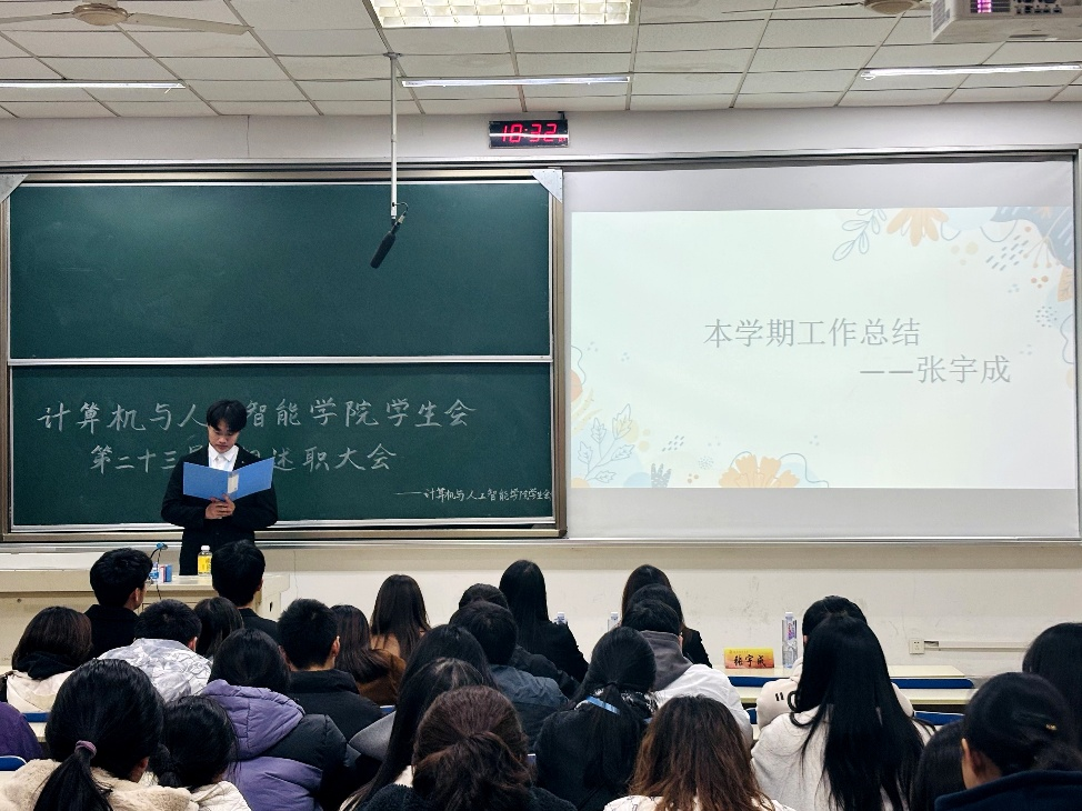 学生会主席张宇成进行工作总结汇报