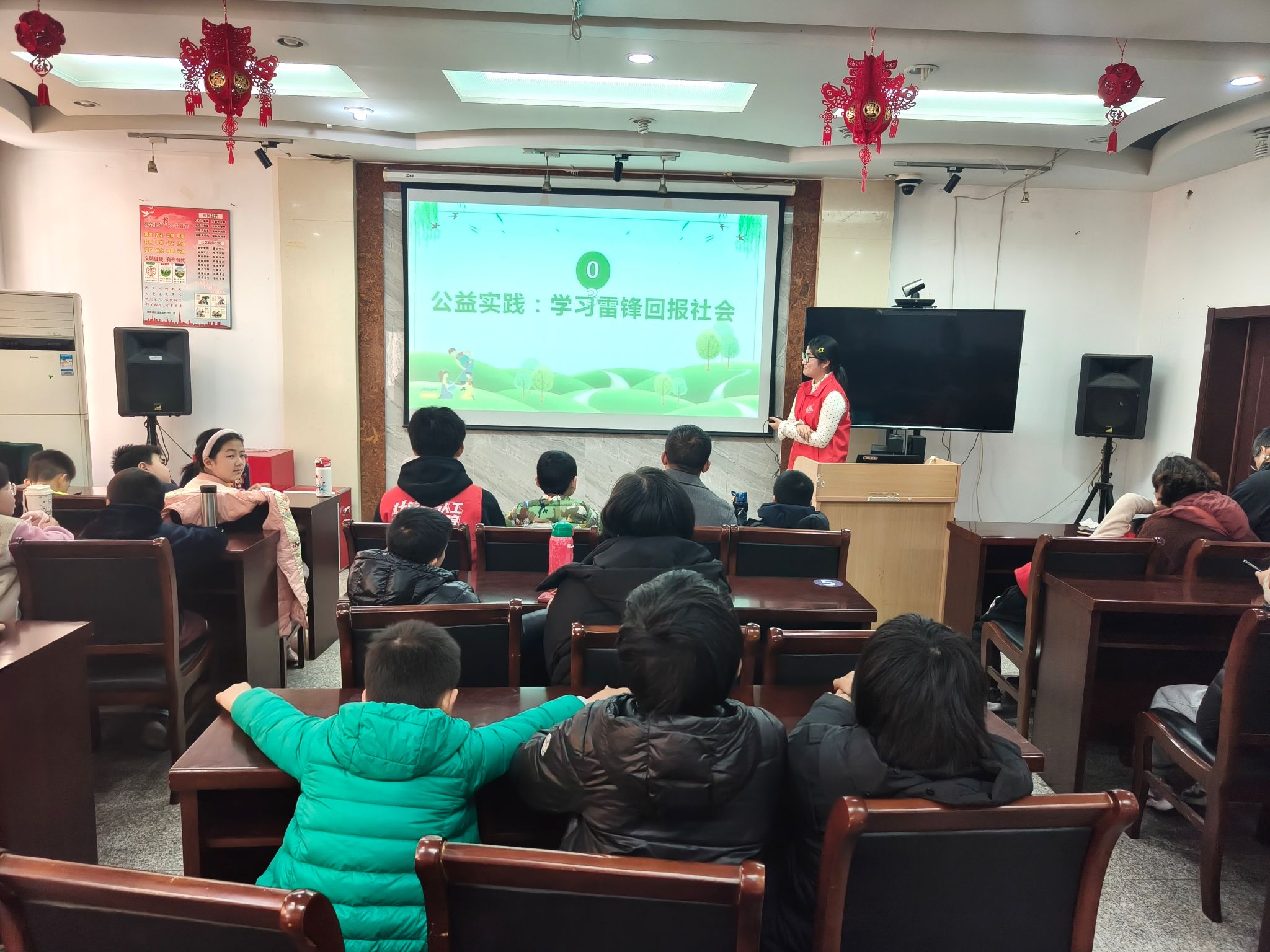 “学习雷锋好榜样,忠于革命忠于党......”活动伊始,熟悉的旋律在社区活动室内回荡。孩子们在志愿者引导下有序签到入场,稚嫩的脸庞上写满好奇与期待。主持人以生动的语言拉开了活动序幕:“小朋友们,你们知道吗?有一位叔叔,出差一千里,好事做了一火车。他的名字叫雷锋。”讲台前,志愿者用浅显易懂的话语讲述着雷锋雨夜送大娘、悄悄为战友寄钱的故事。孩子们听得入神,眼中闪烁着敬佩的光芒。
