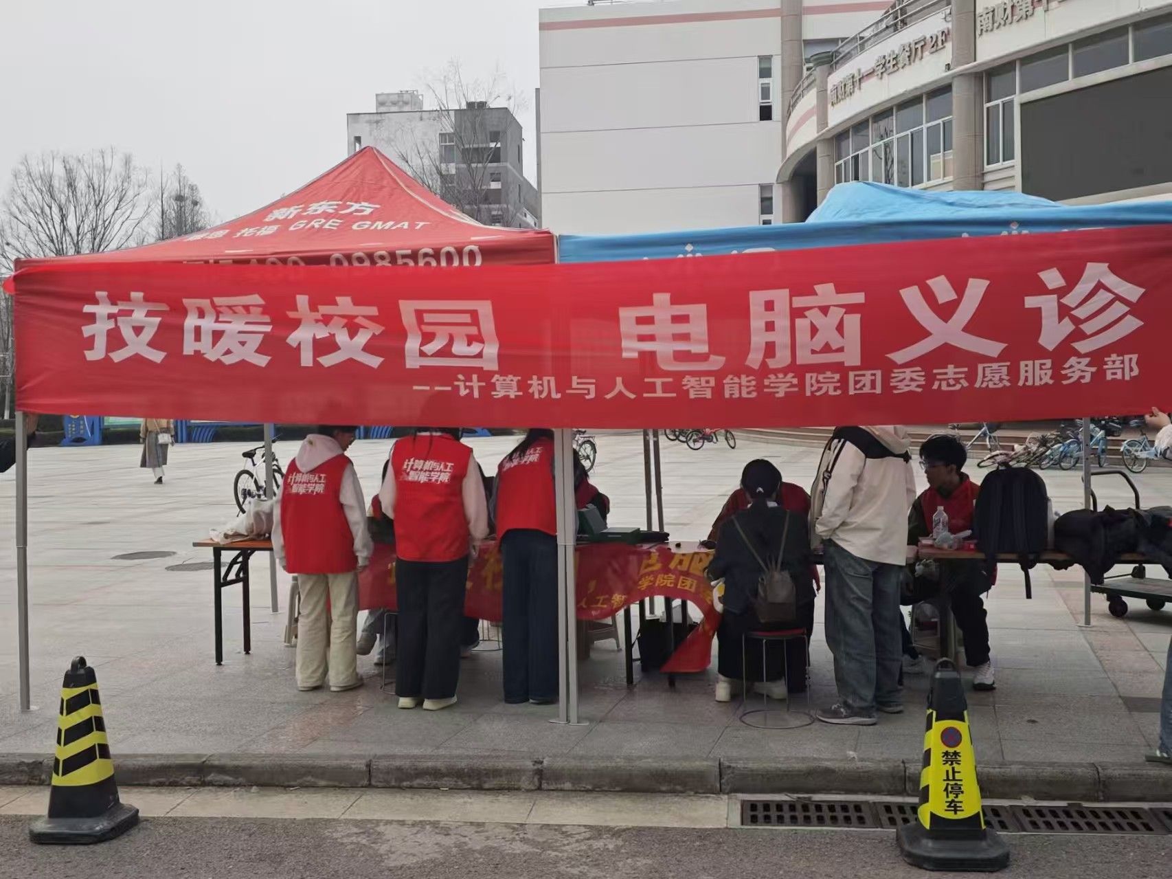 在中苑食堂门口开展“电脑义诊”学雷锋志愿活动。身着红马甲的志愿者们化身“设备医师”,以专业技术为笔、以暖心服务为墨,用实际行动传承雷锋助人为乐的优良作风,为师生的电子设备“把脉问诊”,让志愿服务的温暖在校园里悄然传递。