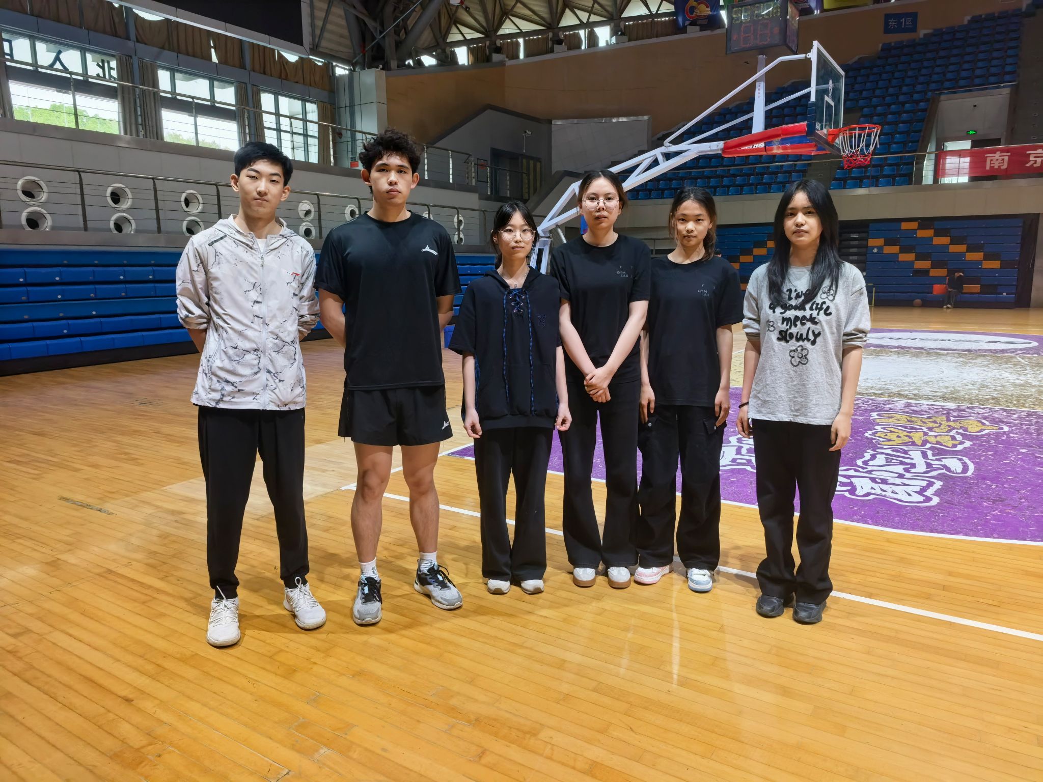 排球队成员在赛场上合影