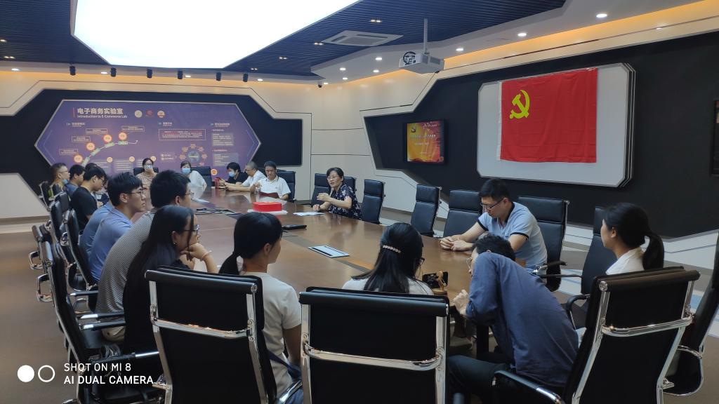 政治生日会上,在七月份入党的韩忠愿教授、张明老师深情回顾了他们的入党心路历程,与支部的党员们进行了深入的交流。韩忠愿教授说,7月1日是他的入党日,每到这一天,他都会回顾38年前入党时的初心,感受自身的责任和使命,对当下反思自省,不断激励自己为实现理想不懈努力。张明老师说作为一个教师党员,一定要有奉献精神,不断完善自己,立德树人,关爱学生。教工党支部书记蒋晔、电子商务实验室党支部书记曹杰为他们送上了“政治生日卡”。