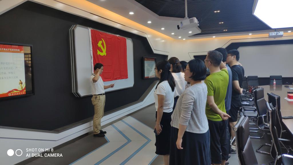 在德业楼211会议室举行政治生日会暨庆“七一”专题党课,线上线下同步传播,同步进行,全体教工党员参加了此次专题活动。活动由学院教工党支部书记蒋晔老师主持。