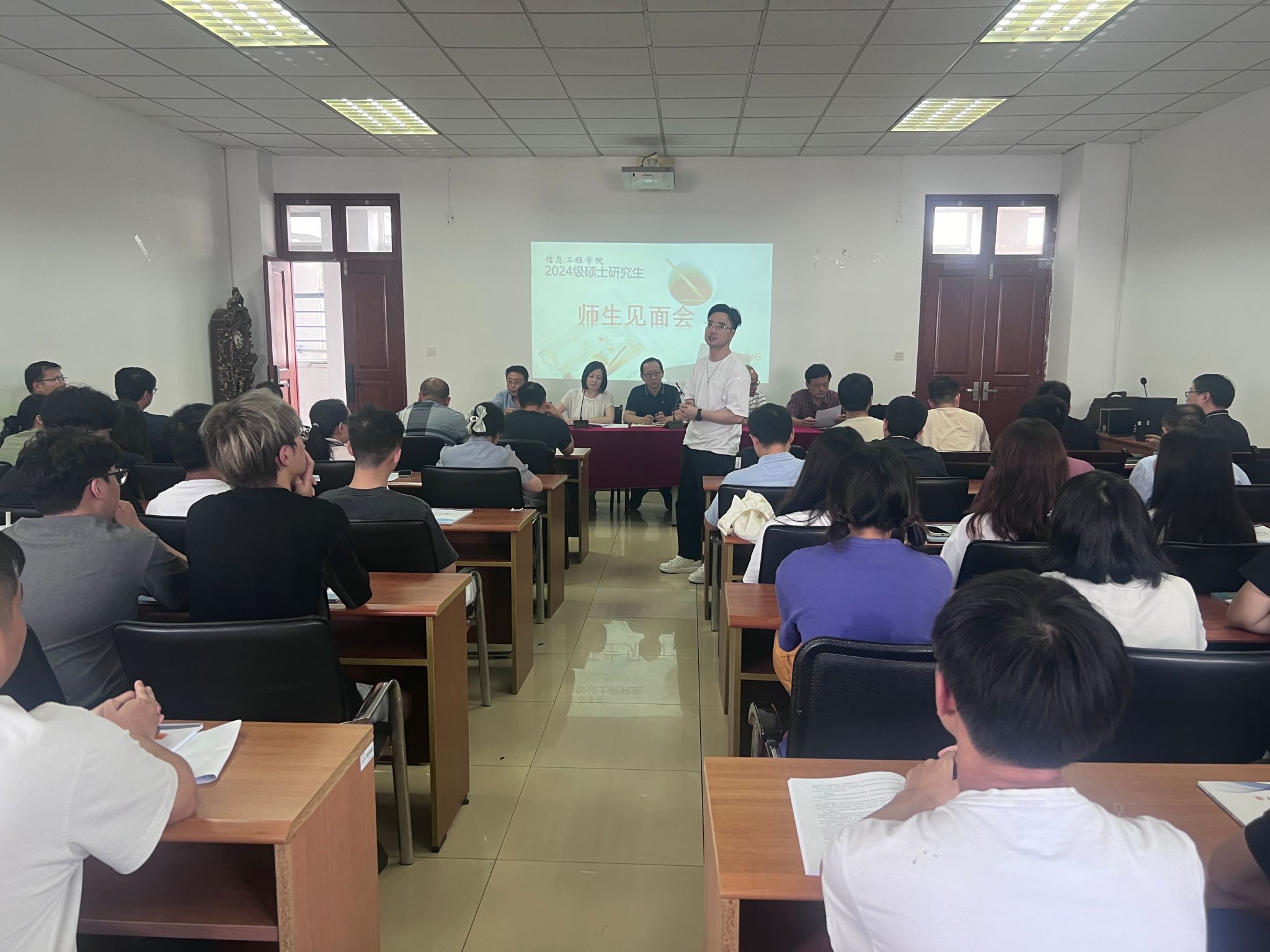 师生见面会上,在场的各位研究生导师就各自的学术背景、研究方向作了详细的介绍,并提醒新生要清晰自己的方向,以确保选择真正感兴趣的方向。通过各位导师的自我介绍,进一步加深了新生对学院导师研究工作的了解,减少了学生选导师的盲目性。