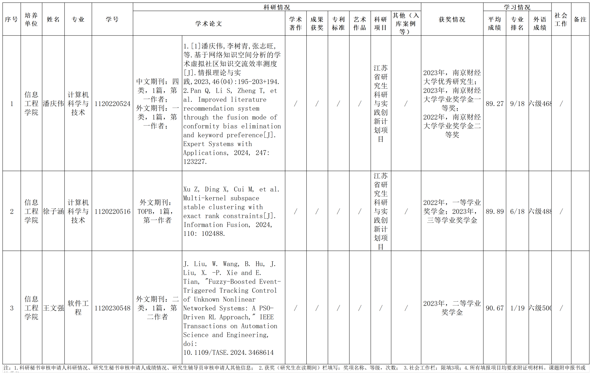 附件:研究生国家奖学金(第二批)申请人简况汇总表(2024)